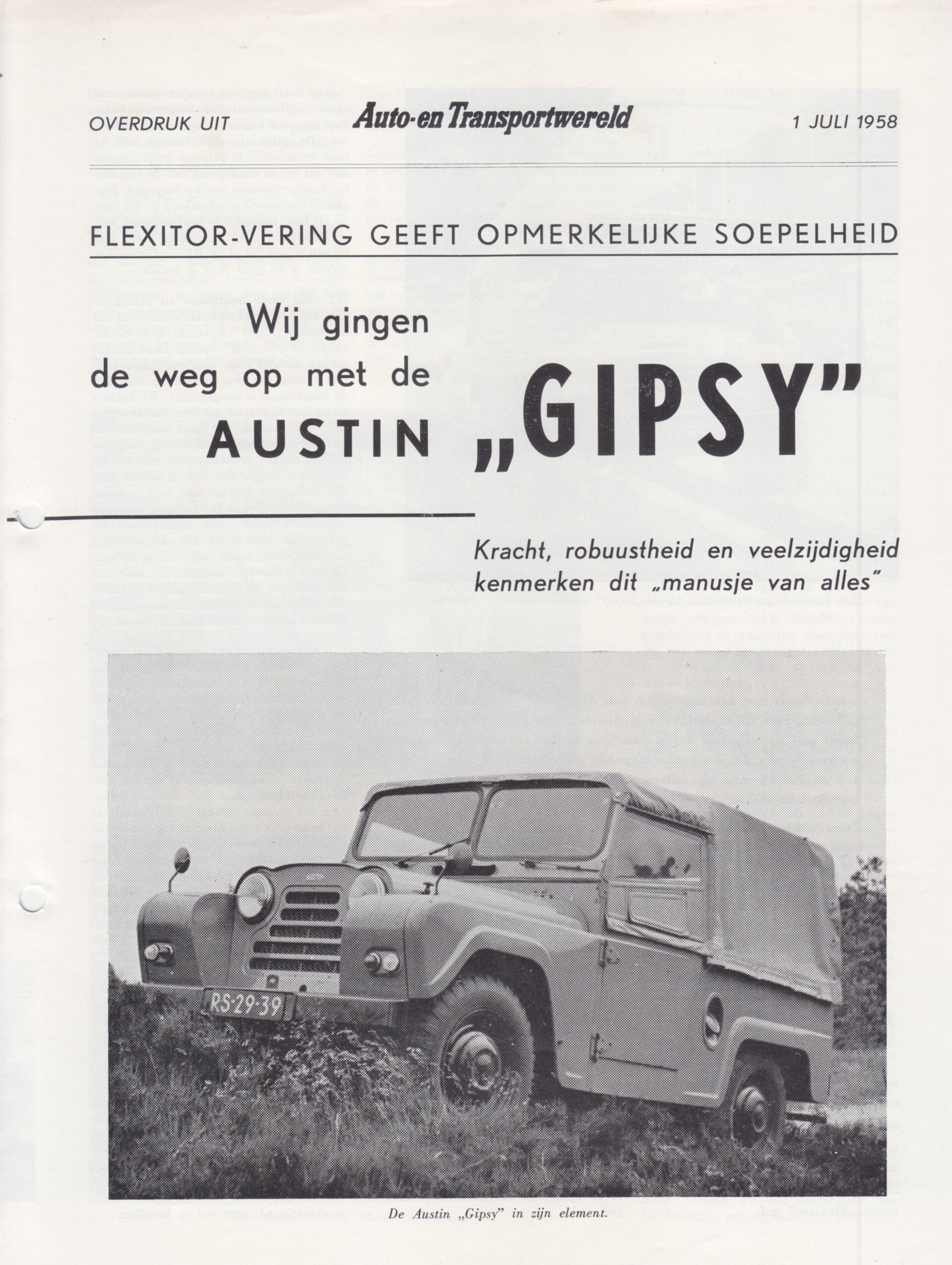 Austin Gipsy 4x4, test reprint, 6 pages, Dutch, 7/1958
