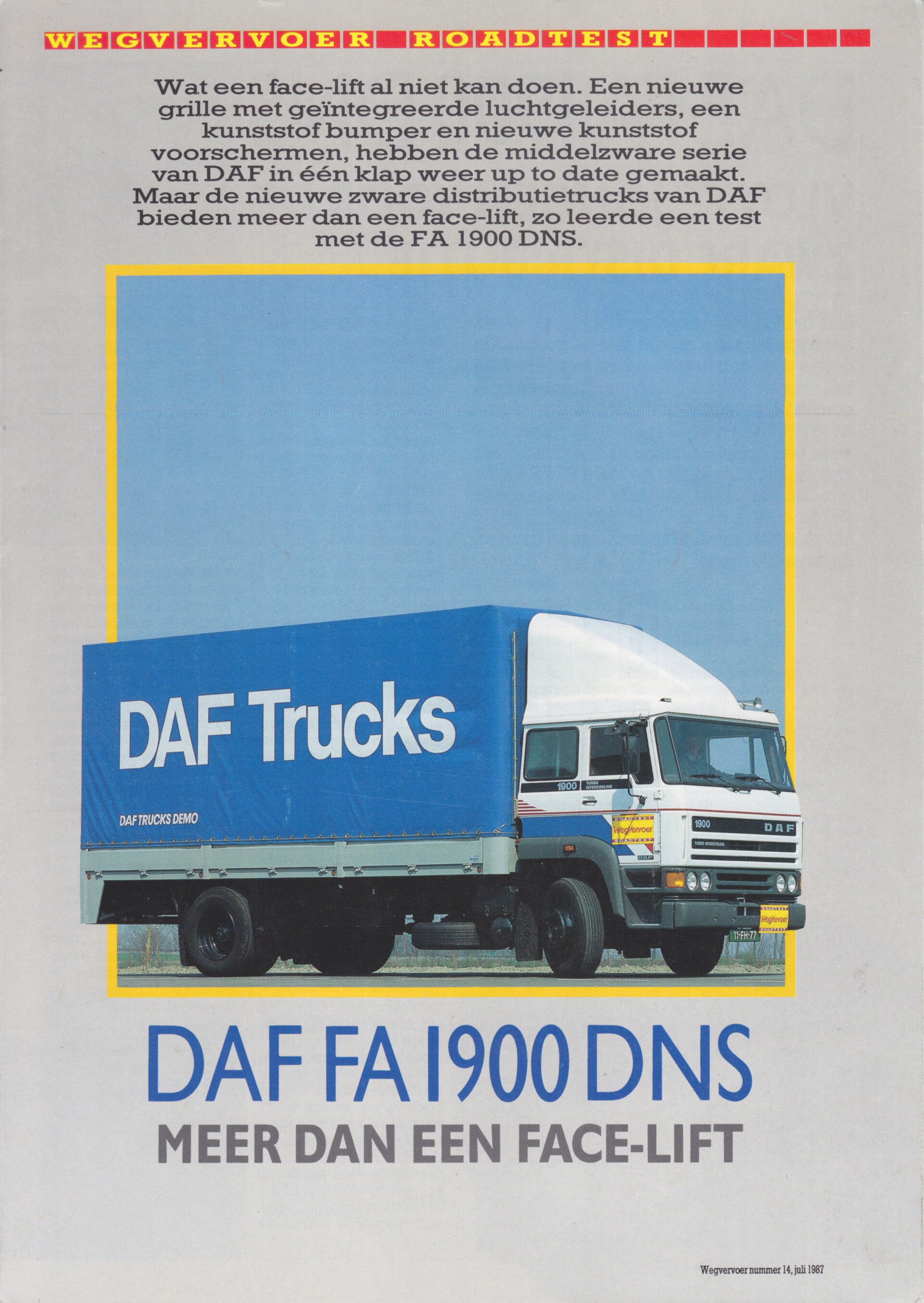 DAF FA 1900 DNS roadtest report, 6 pages, Dutch, 7/1987